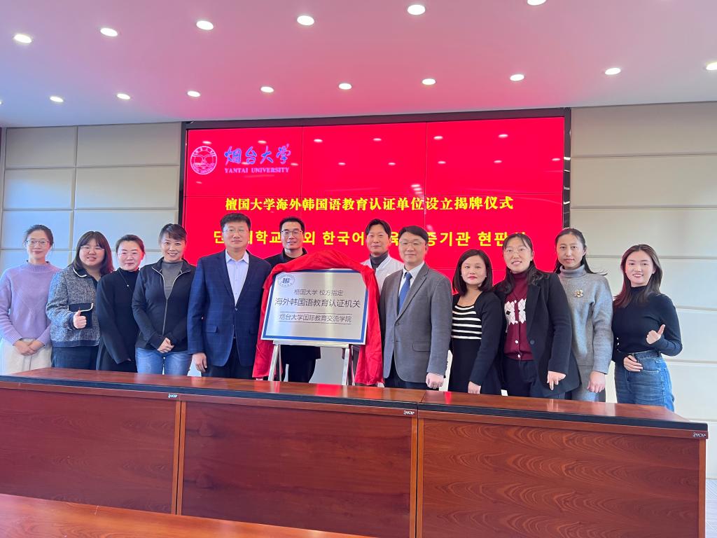 会议最后,由曲世金院长和曹汉承处长共同为“檀国大学海外韩国语教育认证单位”揭牌并颁发认证书。