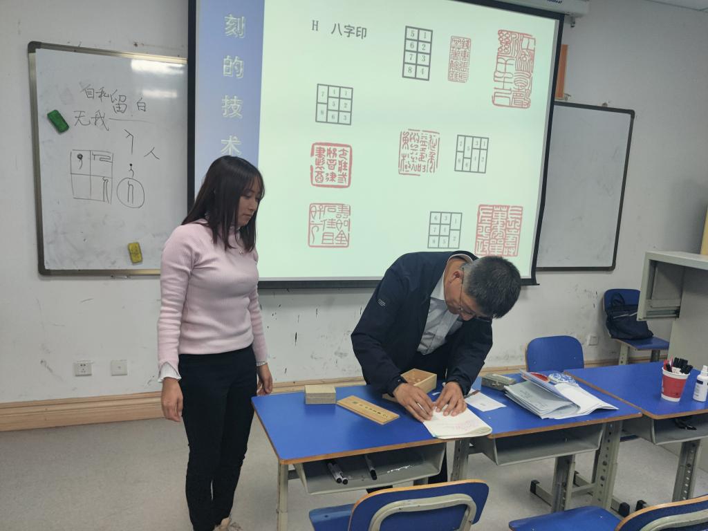 面向全体留学生,举办了篆刻艺术讲座。这也是学院“留学生感知中华传统文化月”系列活动的第三场。