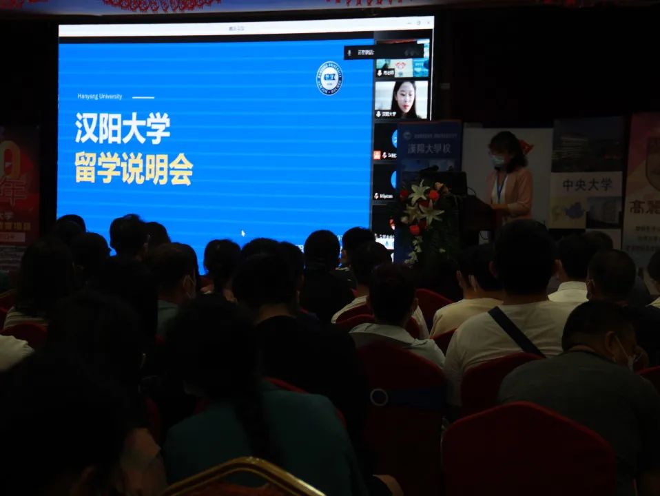 下面,说明会现场连线韩国汉阳大学和庆北国立大学入学处负责老师,两位老师对各自的学校进行了详细的讲解,还介绍了学校对于中国学生的一些关心政策。