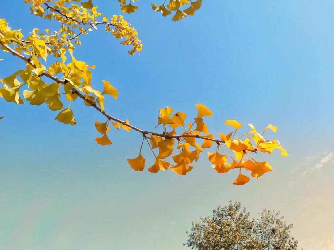 金黄的银杏叶为天空增添别样的色彩