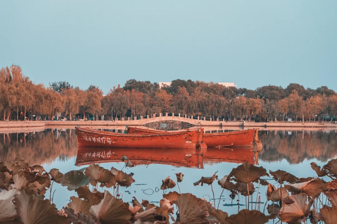 鹅黄烁金与分水映,胭脂遥酌并友天荒。