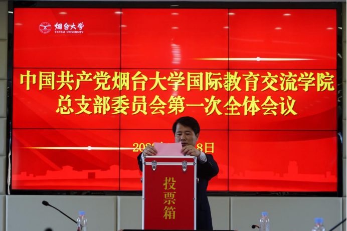 在雄壮的《国际歌》声中,中国共产党烟台大学国际教育交流学院总支部委员会党员大会胜利闭幕。