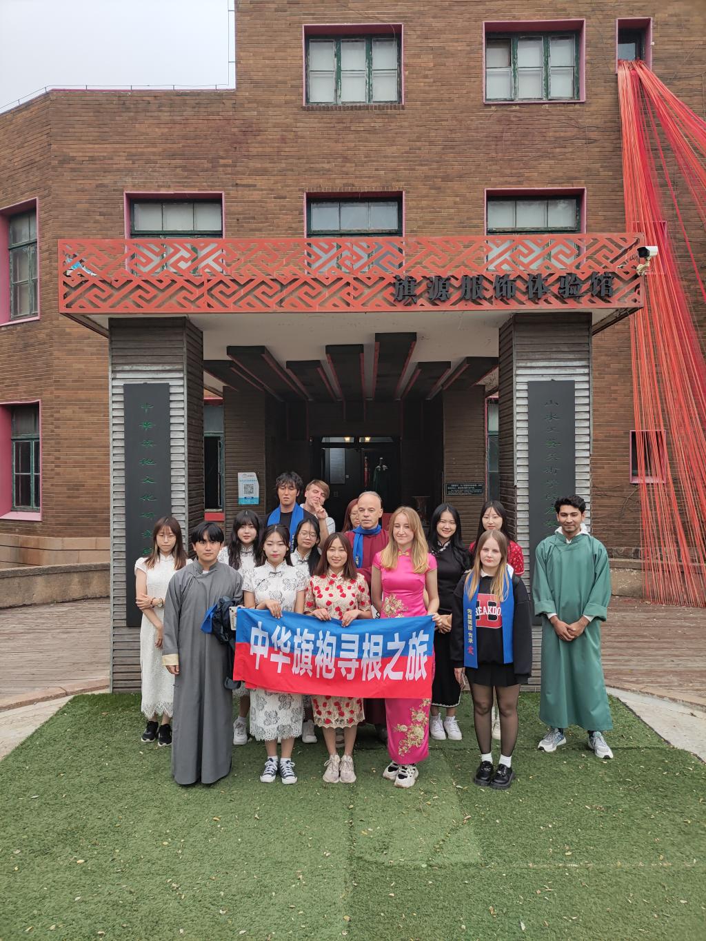 为让留学生更好地了解中国、感受中国,国际教育交流学院于10月13日举办了“留学生感知中华传统文化月”系列活动的第二期——锦绣古韵,旗艺风雅。来自俄罗斯、韩国、日本等国家的16名留学生在老师和工作人员的带领下来到了烟台市芝罘区,打卡了旗源旗袍博物馆,在一针一线中“沉浸式”感受地道烟台古韵。