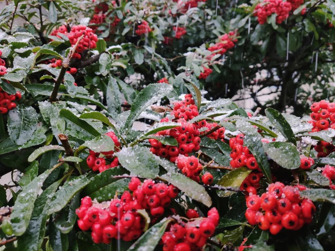 点点殷红点缀着沉闷的冬日