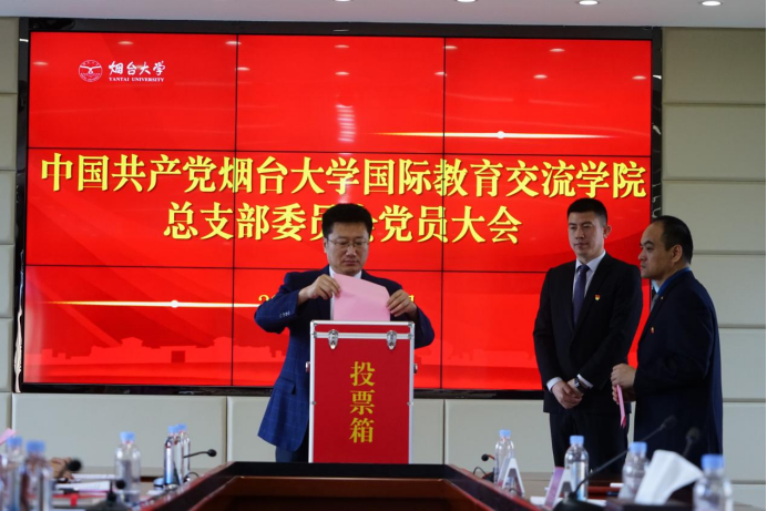 在雄壮的《国际歌》声中,中国共产党烟台大学国际教育交流学院总支部委员会党员大会胜利闭幕。